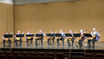 公民館からの依頼もあって7月6日(日)の午後にステージで30分間演奏しました。