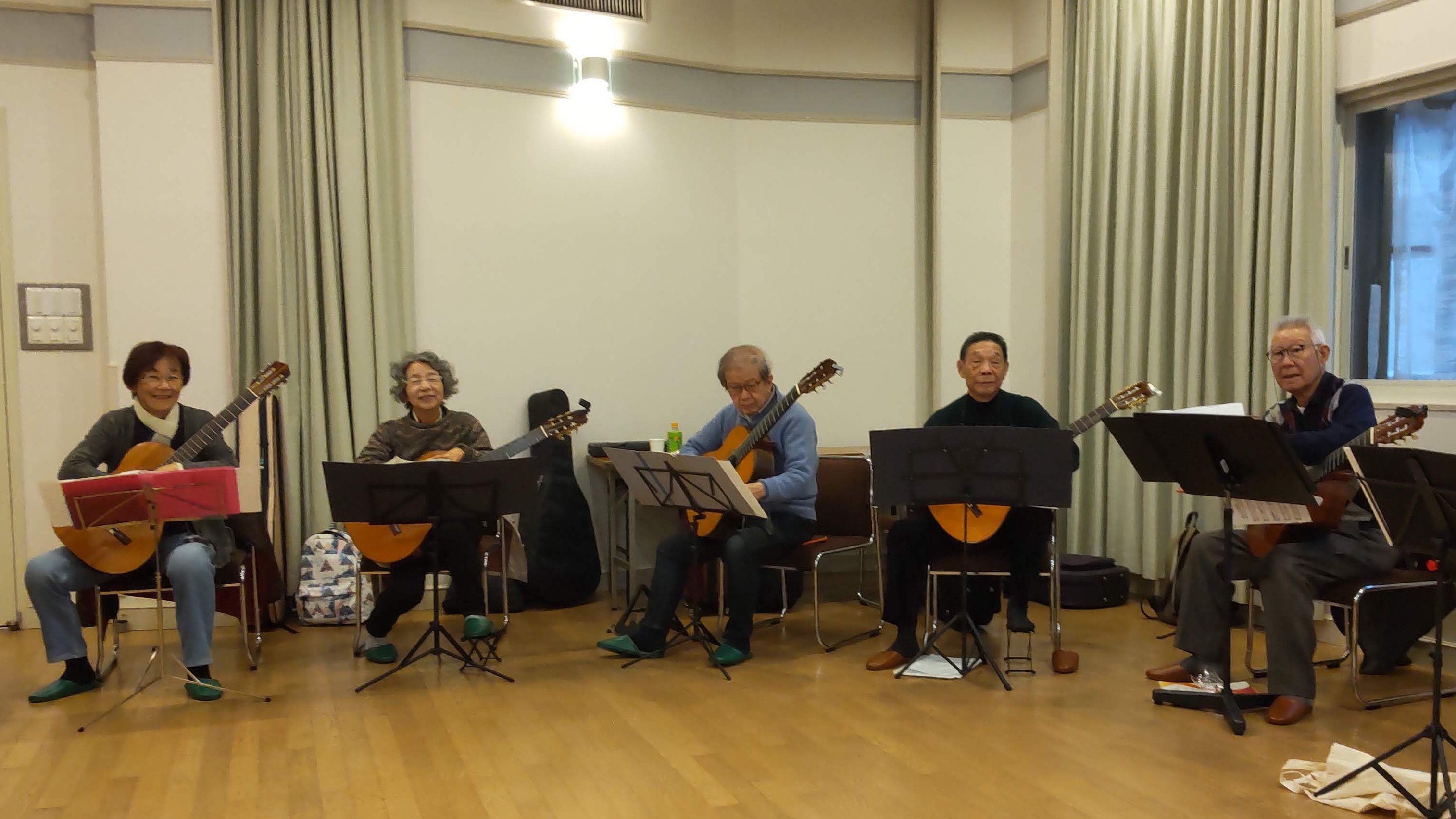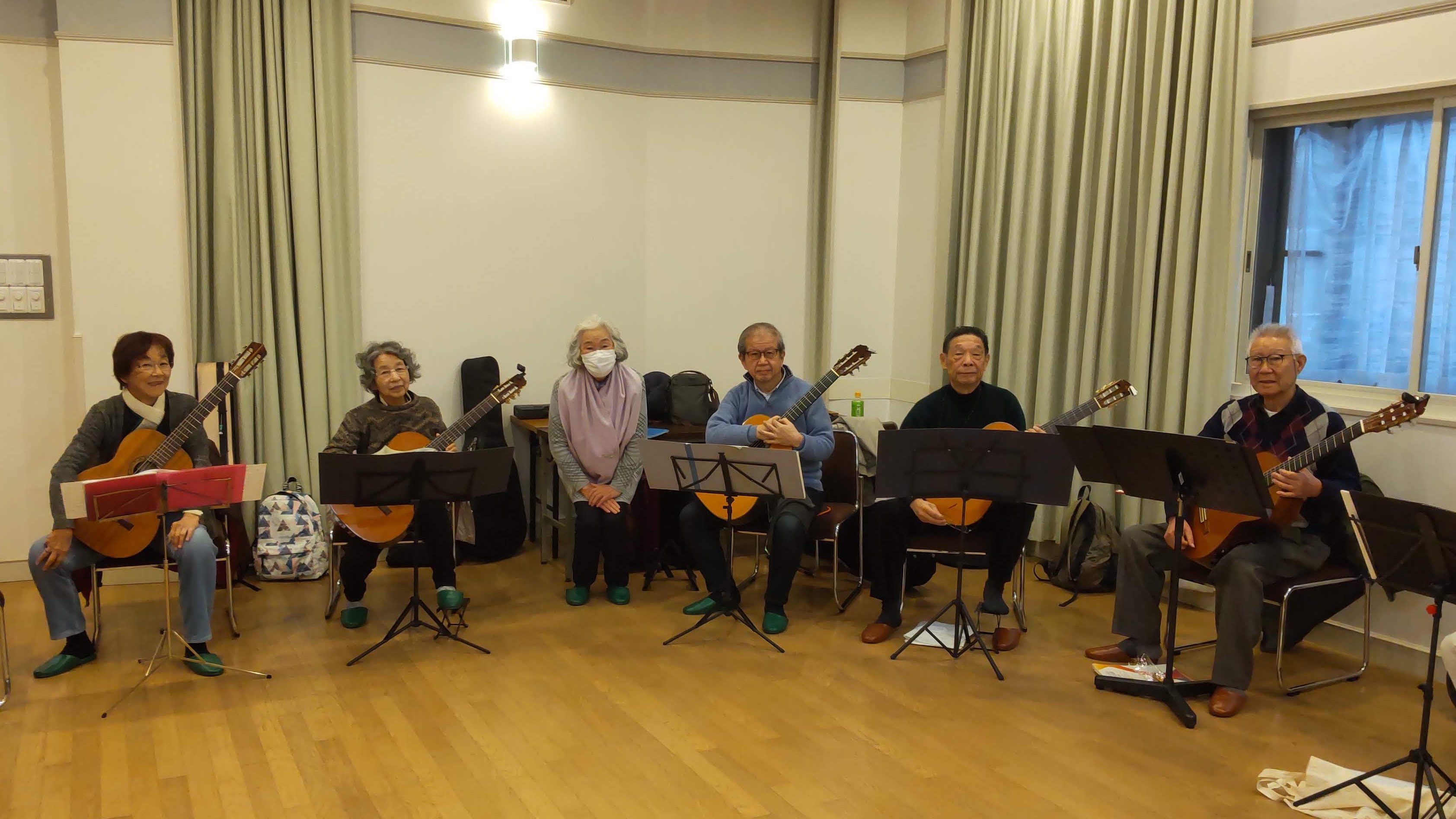 寿学級の参加者は60歳以上の方41名で、ギターの生演奏は初めて聴く方もおられましたが、